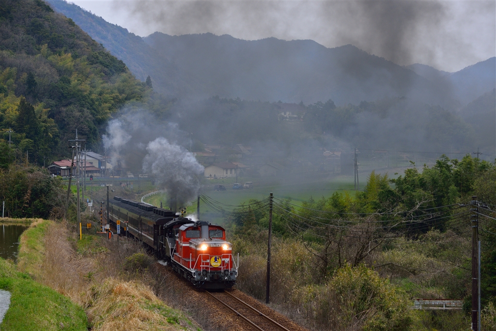 上りはDLやまぐち号、煙で風景だいなしw