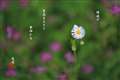 宙玉レンズでタンポポと芝桜を撮ったら、太陽のコロナみたいなボケができました。葉っぱも少しだけ入っているので、一応お花と葉っぱのコラボと言うことにしてください(汗)