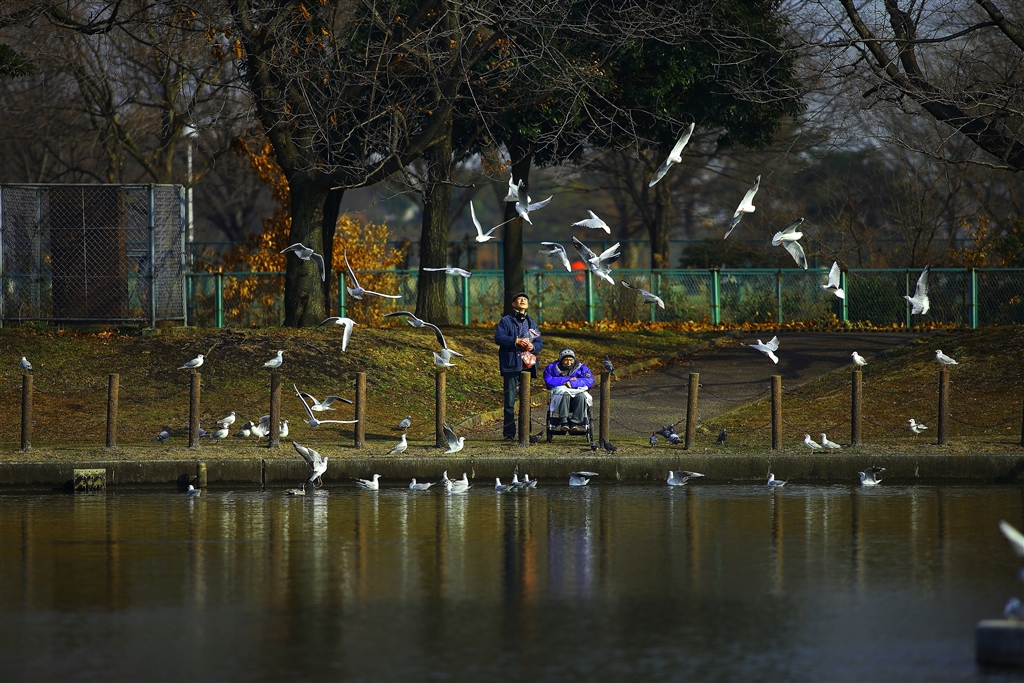 老夫婦とユリカモメ