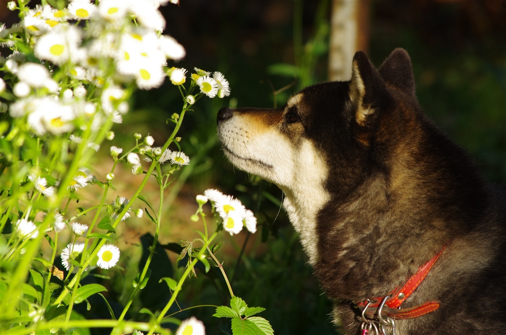 花の香りを嗅いでるように見えますが、実はハエを追っています