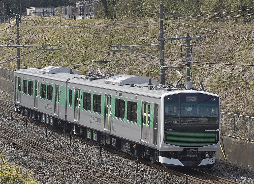 パンタを上げて走ってます