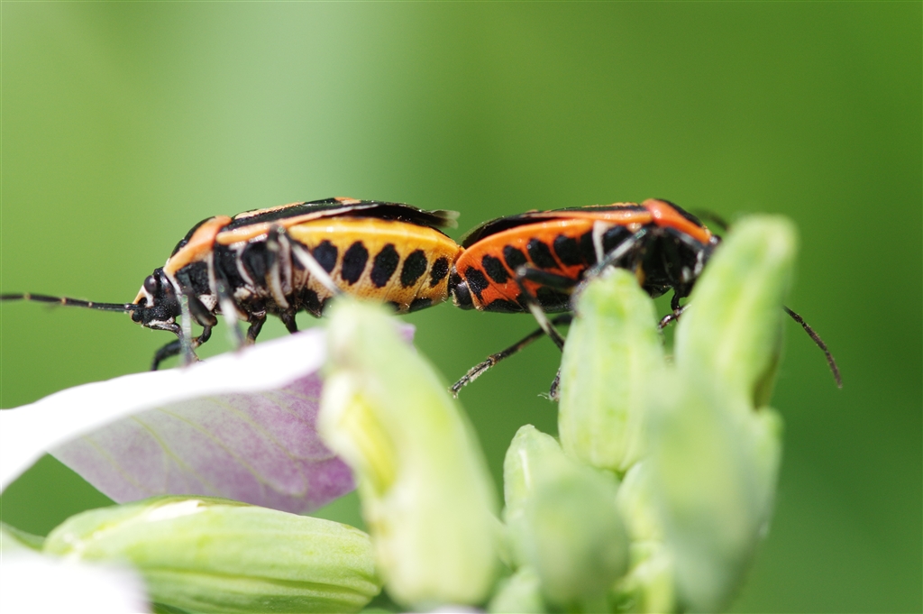 「くる禁」 ナガメカメムシの交尾 どちらが♂ 等倍