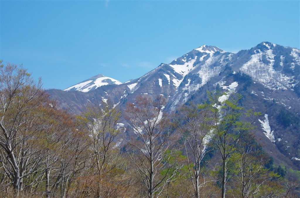 マチガ沢、振り返れば白毛門(右)と笠ヶ岳(左)