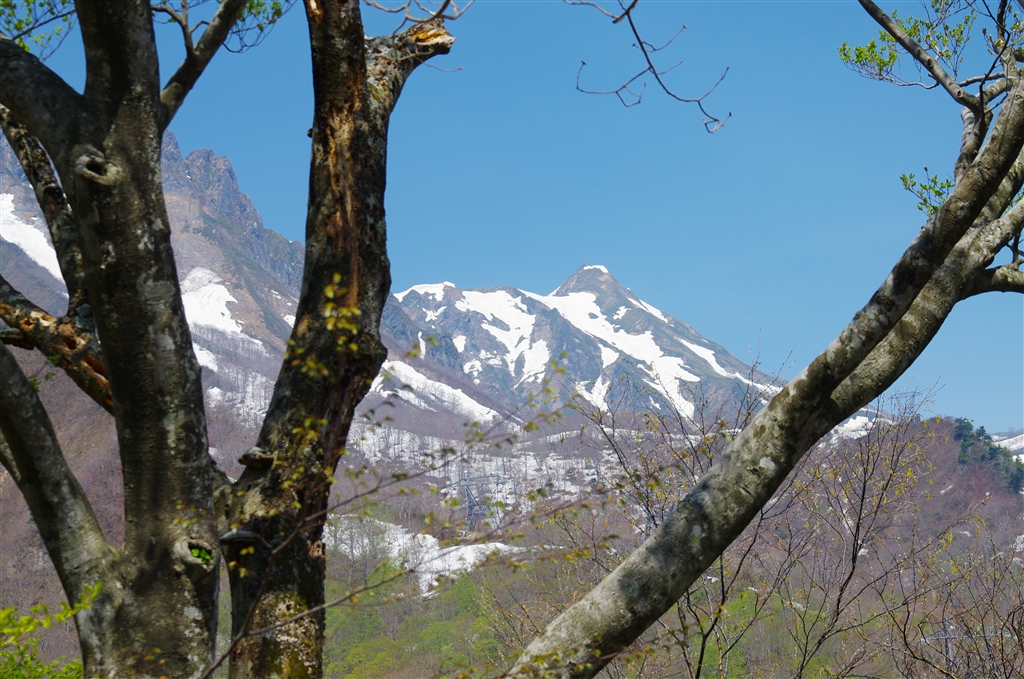 一の倉沢を目指して:木々の間から上越のマッターホーン、武能岳