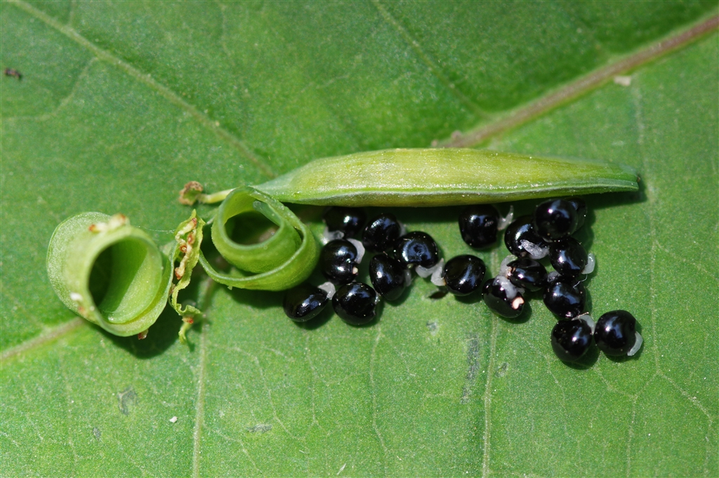 ムラサキケマンの種と種枕(シュチン) 等倍