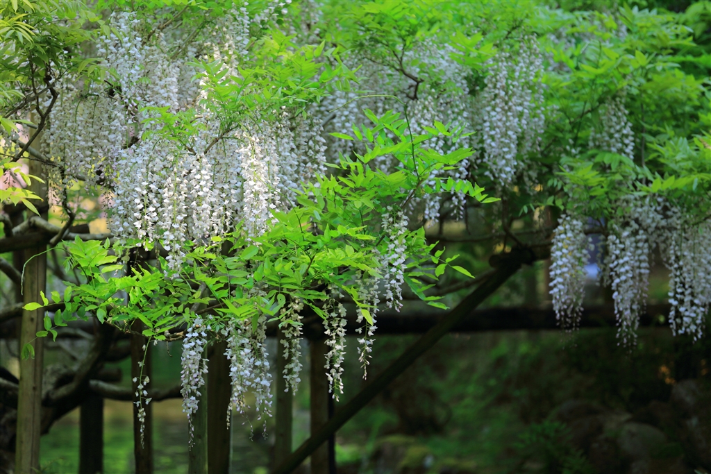 「緑葉も 肩にふれもで 白き藤」
