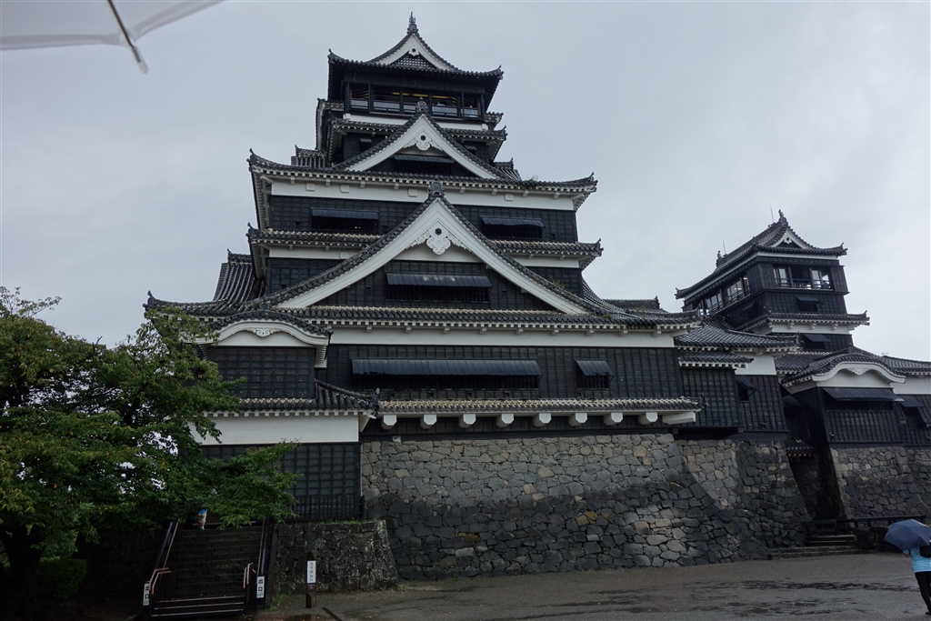 熊本城に傘をさしてあげました