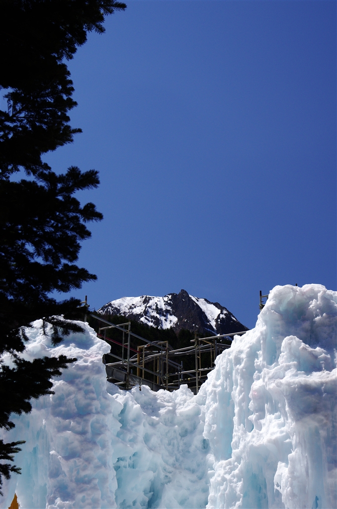 赤岳鉱泉にて。とろけ始めたアイスキャンデーと阿弥陀岳。