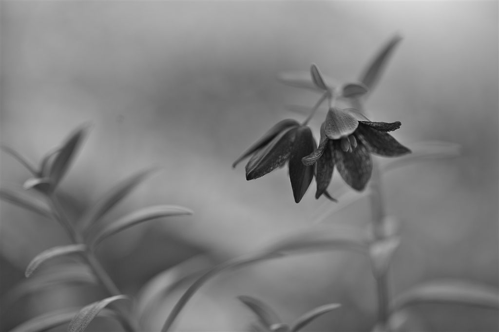 黒百合の花をモノクロで