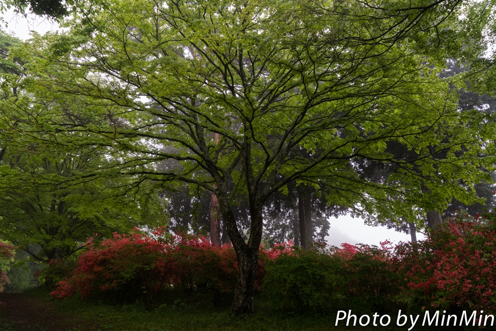 朝靄の中のツツジ
