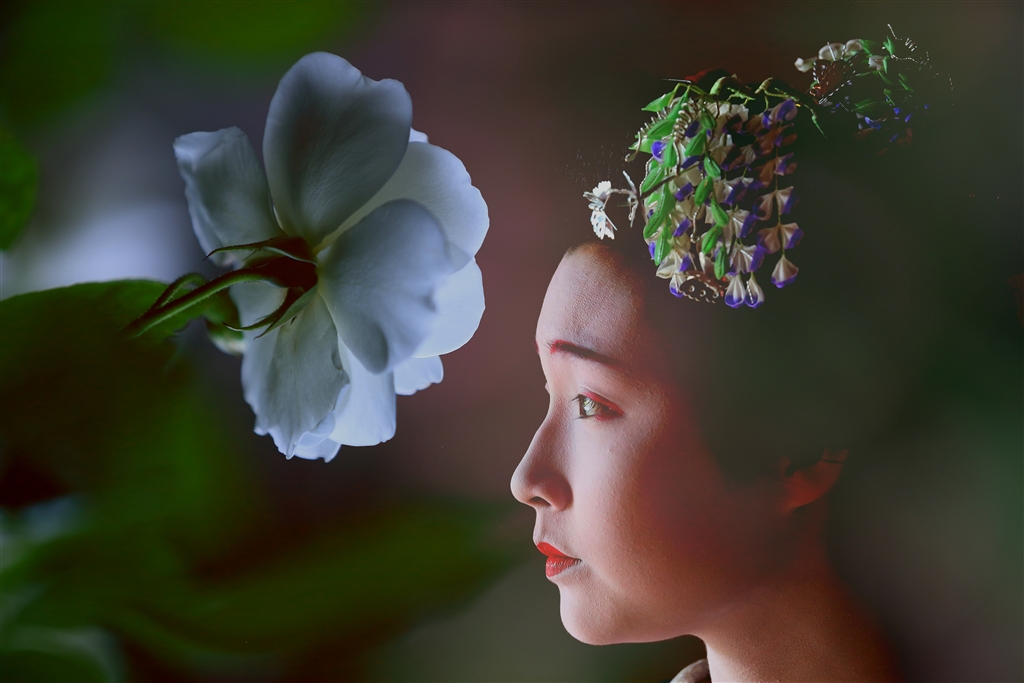 「花と舞妓」 薔薇と舞妓はんを合成しています