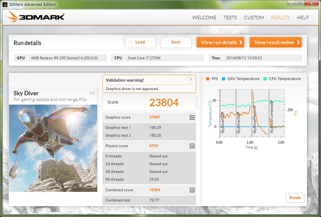 3DMark SKY Diver 2700K + R9 290X Quiet OSDなし