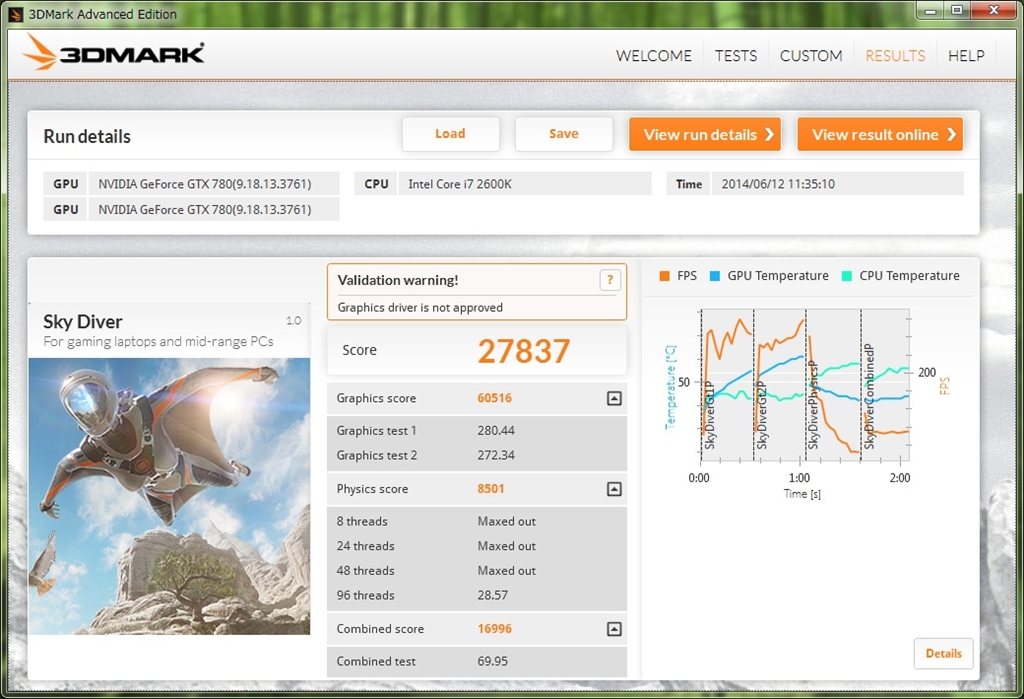 3DMark Sky Diver 2600K + N780GTX Lightning + GTX780 HOF