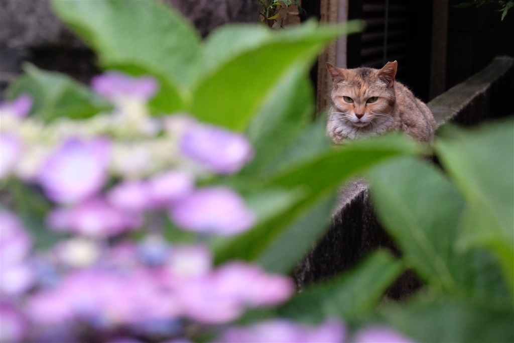 ネコとアジサイ再び(苦笑)