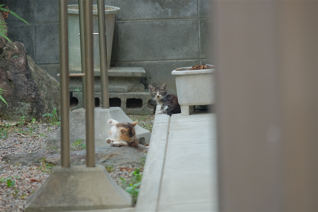 奥の子猫は、1歩前に出ただけで逃げて行きました