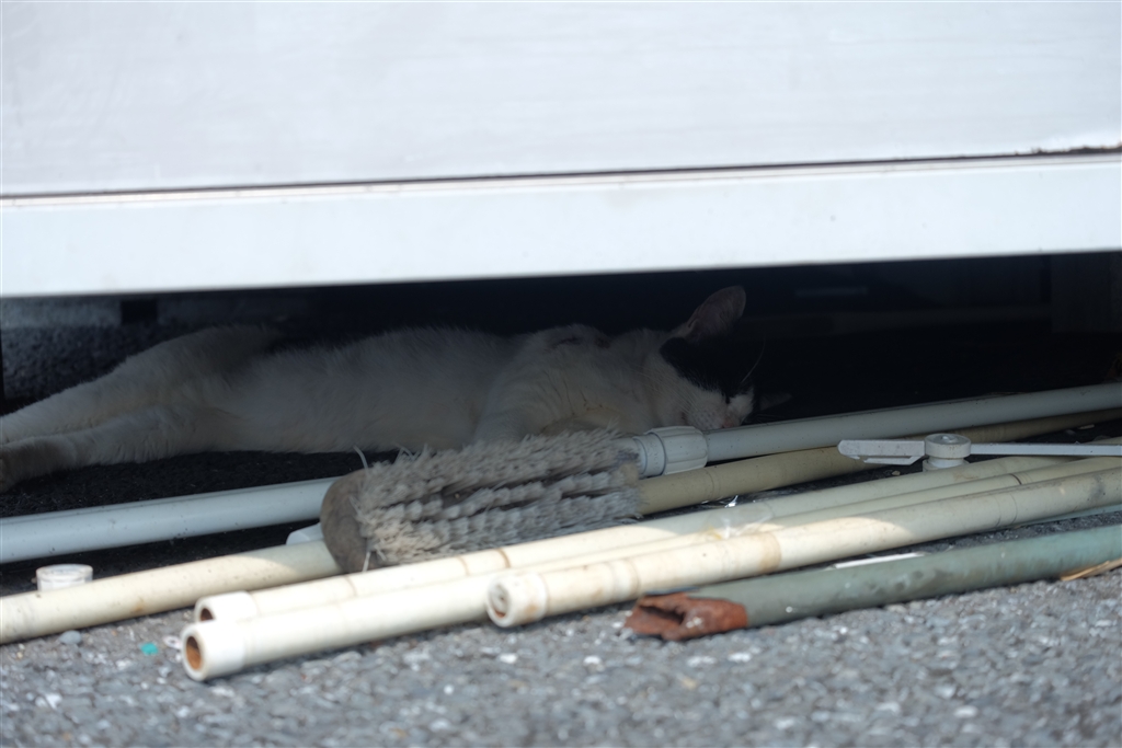 コンビニから。ここは、いる時は4匹ほどいますが、探しても1匹だけでした