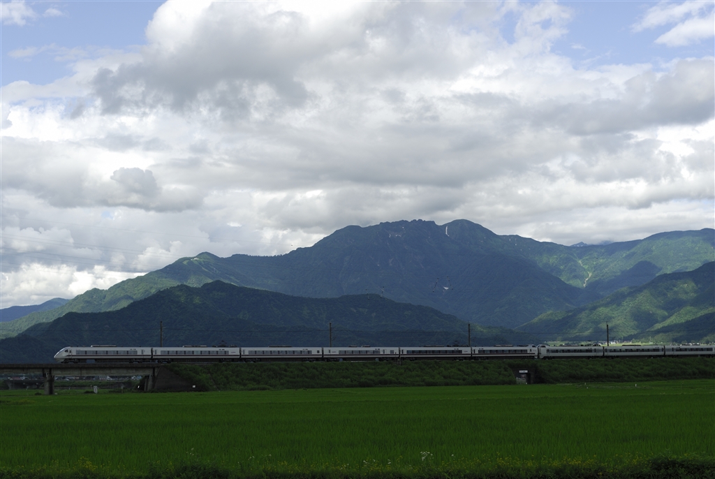 はくたか号と八海山(車両端切れ・・・)