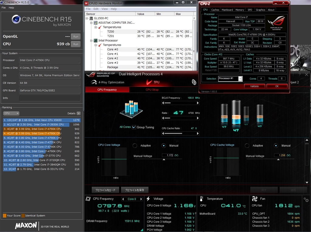 『4.7Ghz CO1.172v R15完走 室温28度です。』 CPUすべて 優雅な子猫さんのクチコミ掲示板画像1/4