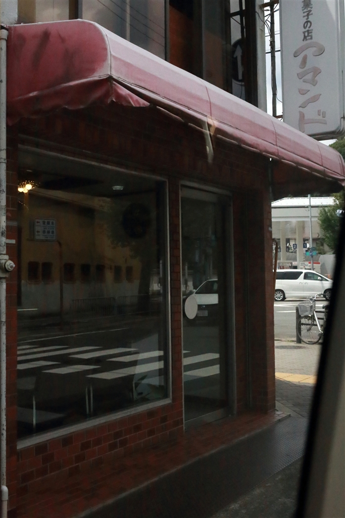 車窓から。ガラスに写りし歩道、、歩行者が居たらと、、、