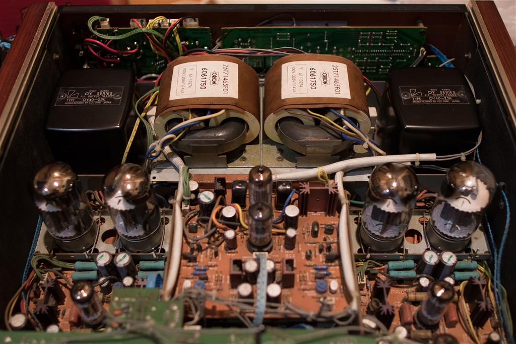 巨大なパワートランス(裏にもあります)と出力トランス
