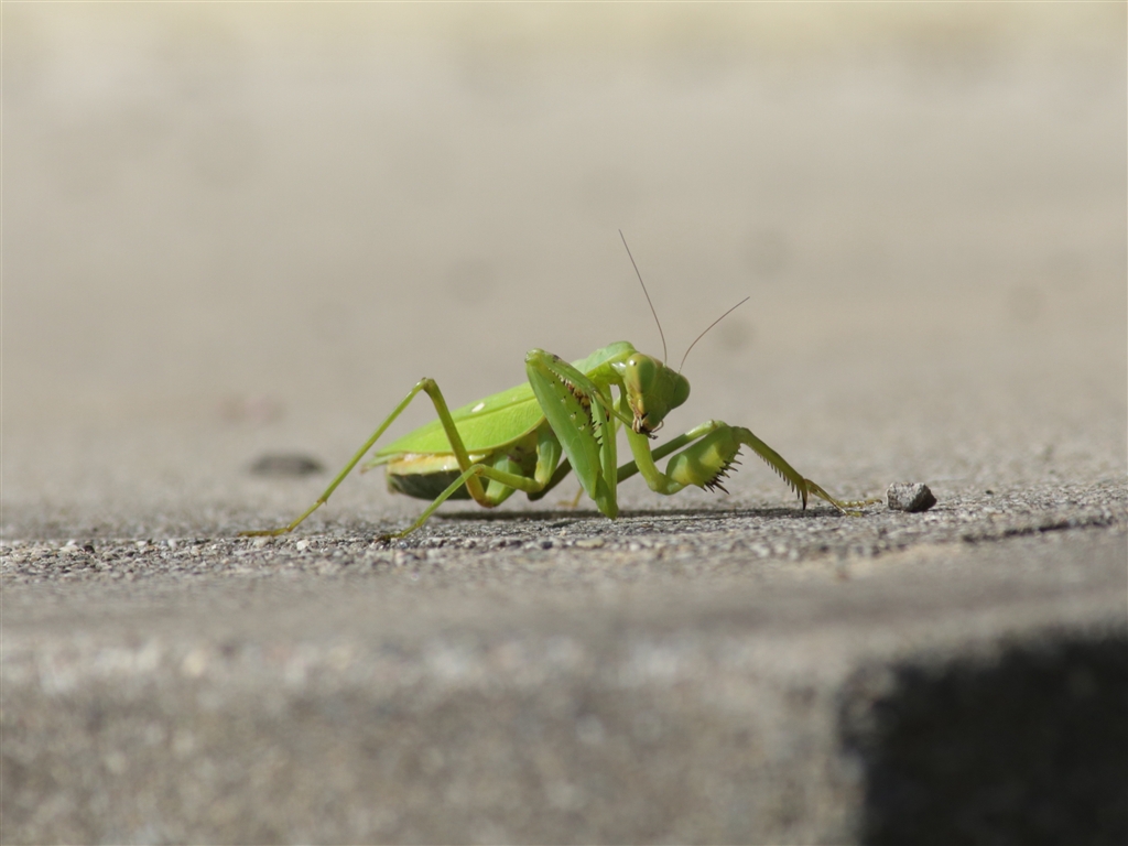 自宅玄関先にいたハラビロカマキリ(トリミングしました)