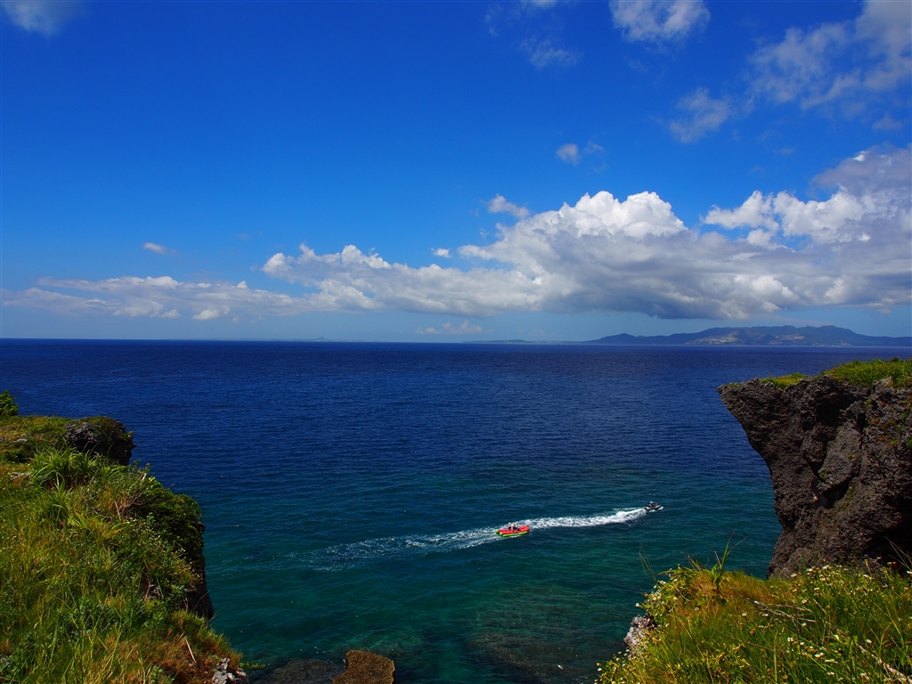 万座毛の崖の隙間から