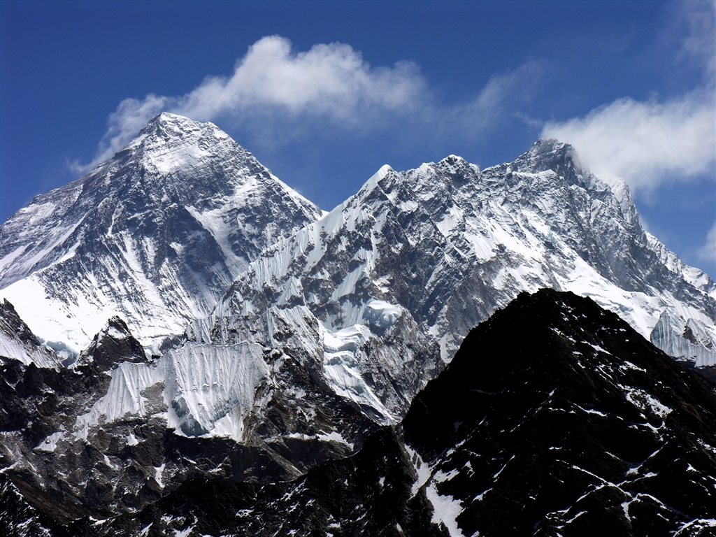 上空はジェット気流・エベレスト8848mとヌプツェ7861mとローツェ8516m