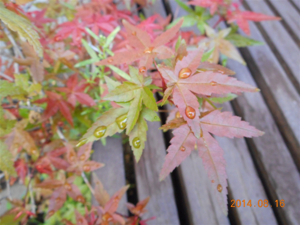 我が家の 縁側横の 紅葉 が 赤くなってきました。