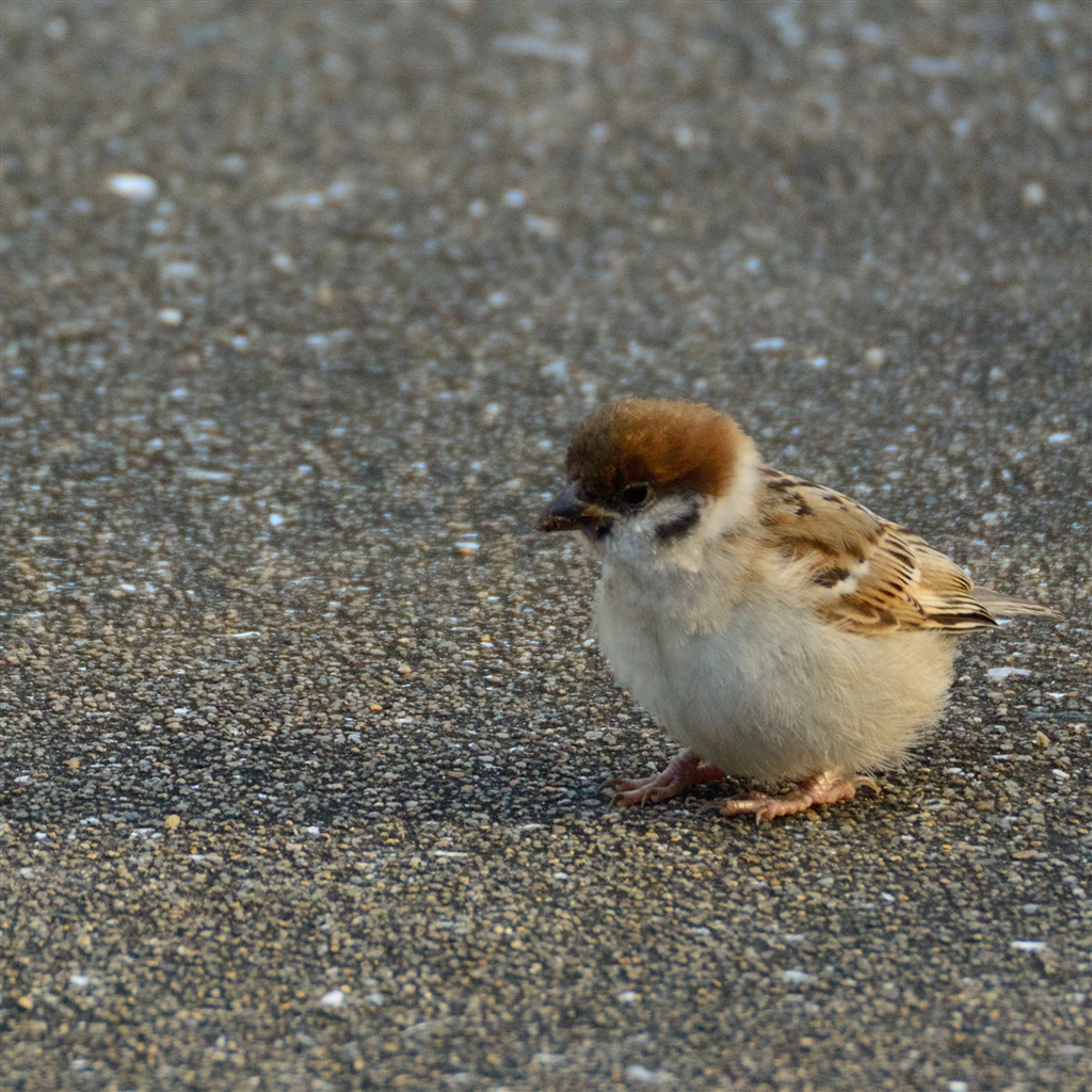 小さいフワフワしたスズメがトコトコ歩いてました^^