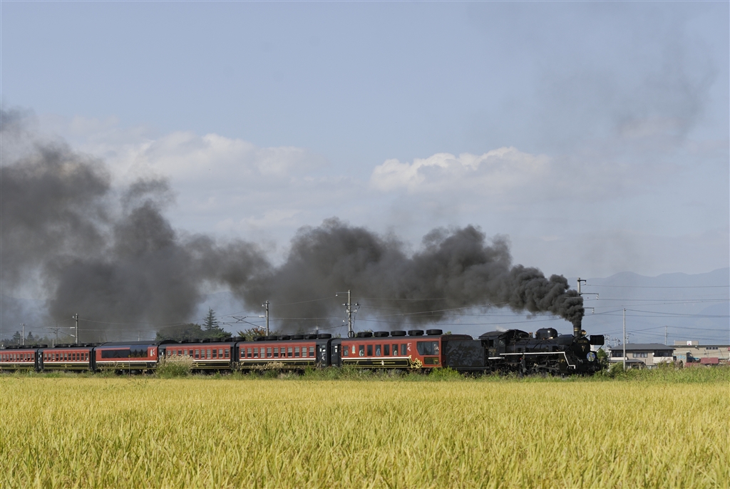 塩川〜笈川間のストレート 平坦なのにこの煙!