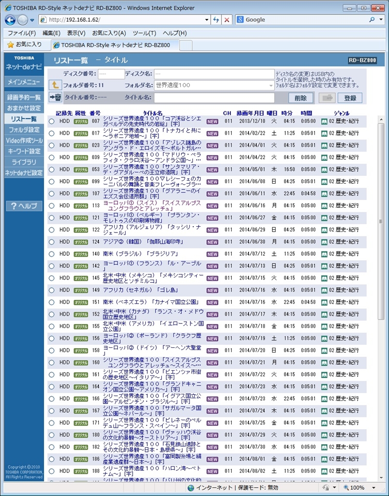 東芝のタイトル一覧画面です。集約されています。