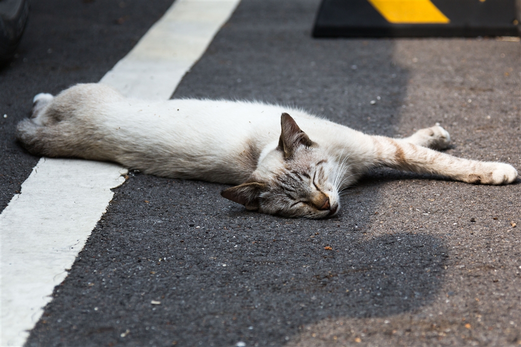 駐車場でドテーッ 轢いてくれ〜の寝相(笑