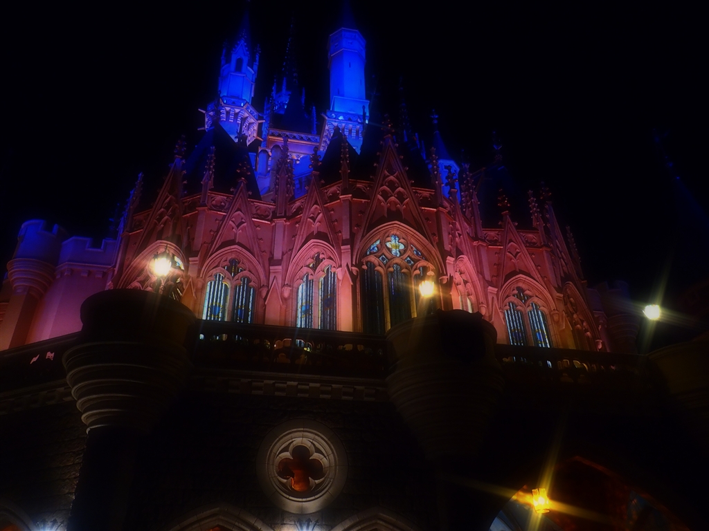 シンデレラ城の裏側をあおり気味に