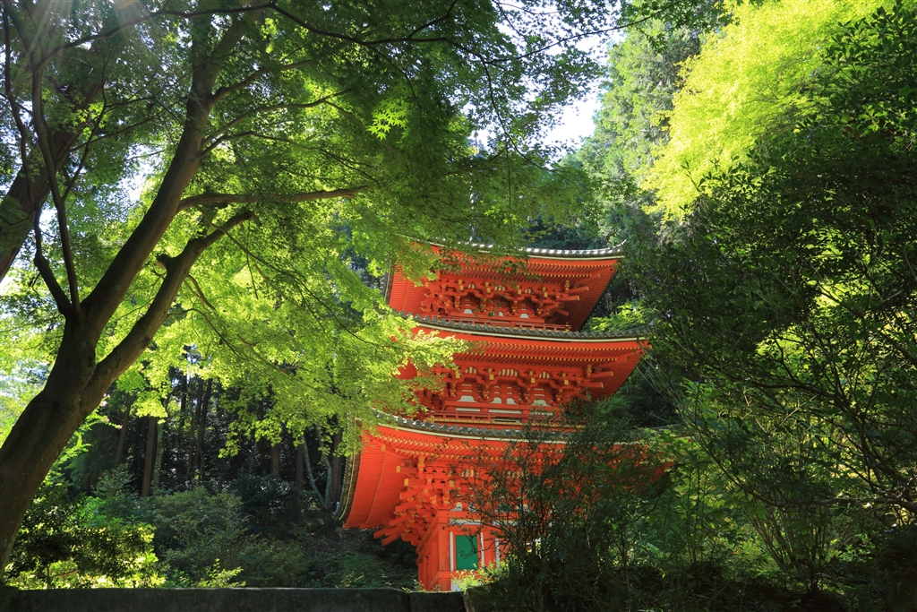 「岩船寺 三重塔」 室町時代に建立 重要文化財