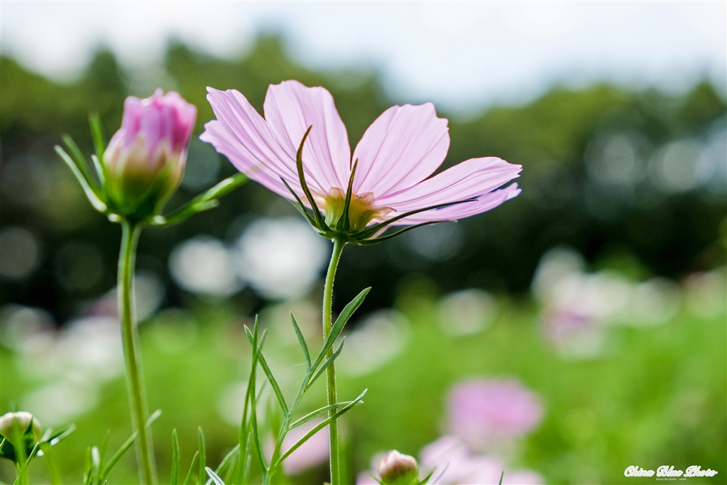 上を見あげて嘆く私。あ〜コスモス。