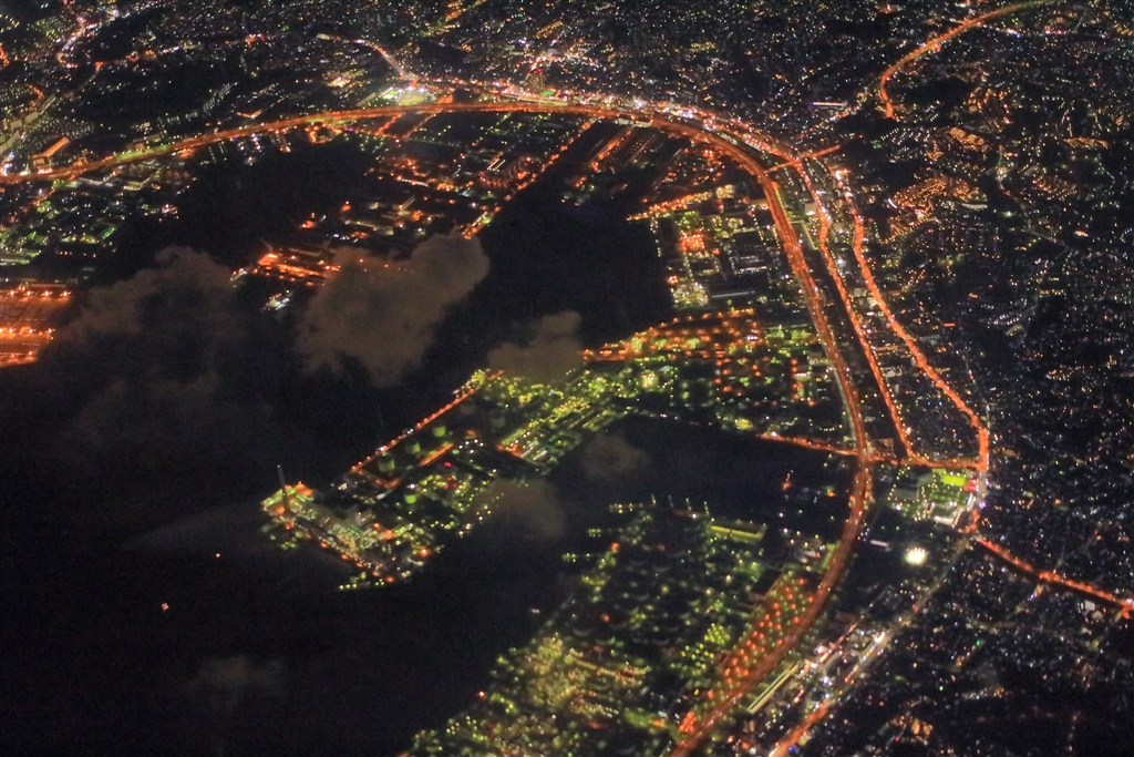 東京湾岸上空(ISO6400、絞り開放、1/15秒)