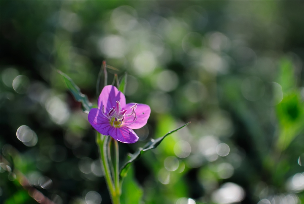 アカバナユウゲショウ、朝日に映えてきれいだったので