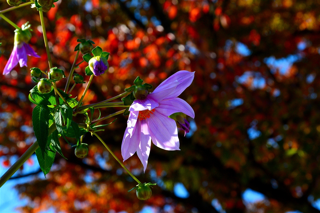 紅葉をバックに花を^^