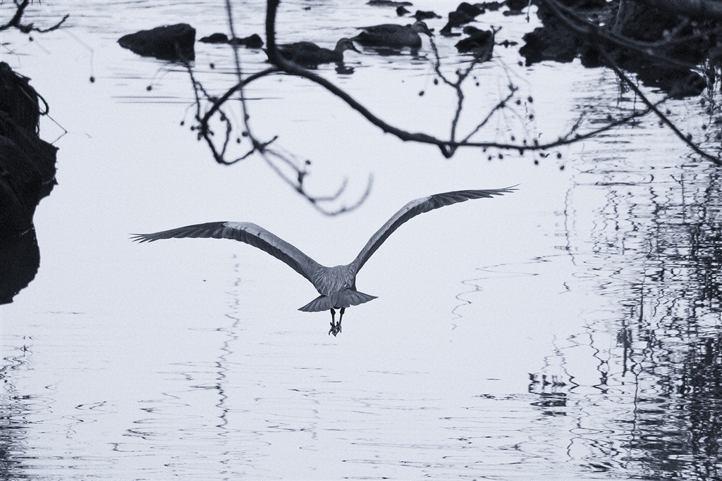 眼下を大柄なアオサギが飛んでいったので、連写