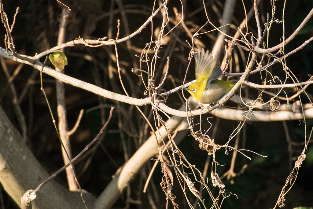 メジロが群れでツーツー鳴きながら飛び交っていました