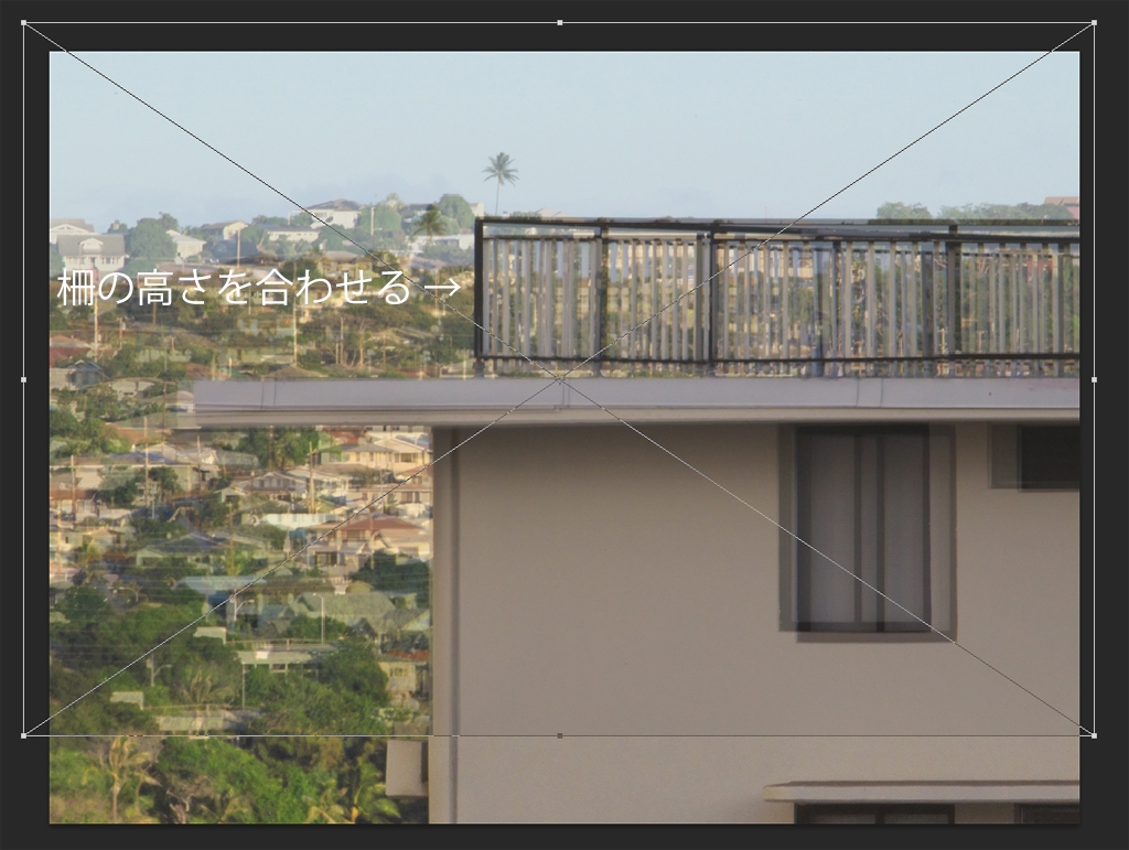 2枚目を柵の高さに合わせて重ねる(50%半透明)