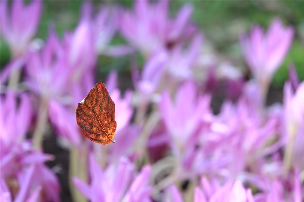 「枯葉散る」 蜘蛛の巣からぶら下がっているのですが・・・