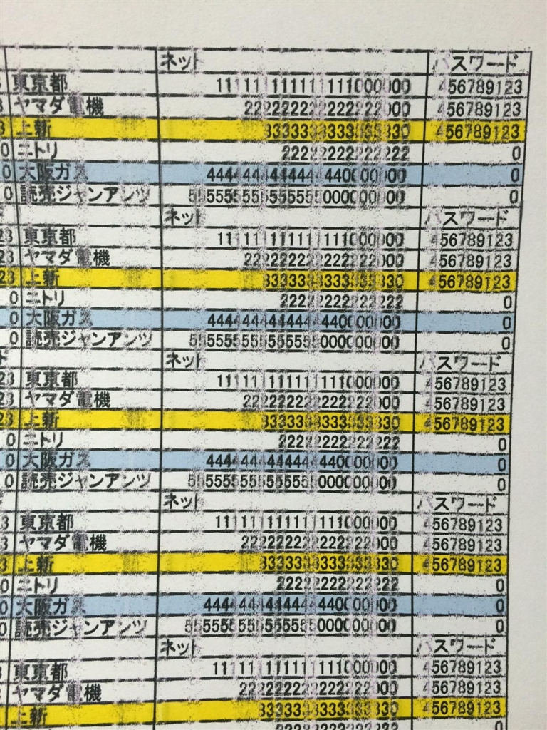 印刷したエクセルです(例)