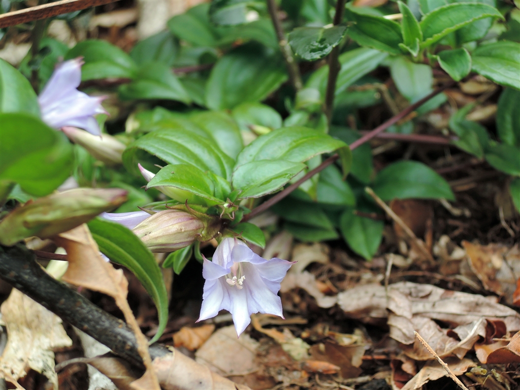 2 ツルリンドウ ご近所里山では赤い実はまだ、こちらではチラホラしかも蕾もいっぱい