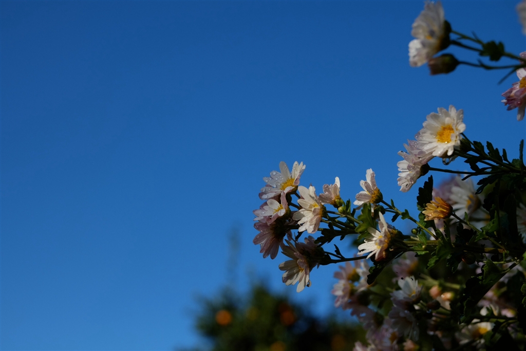 青空と朝陽と雨上がりの雫が綺麗でした♪