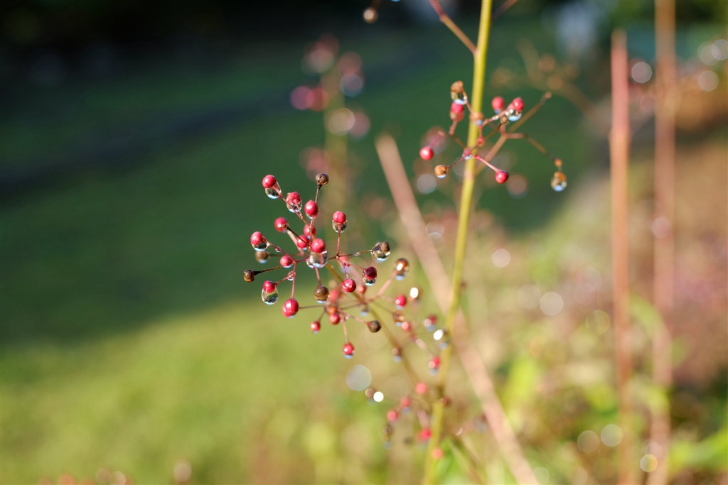 青空と朝陽と雨上がりの雫が綺麗でした♪