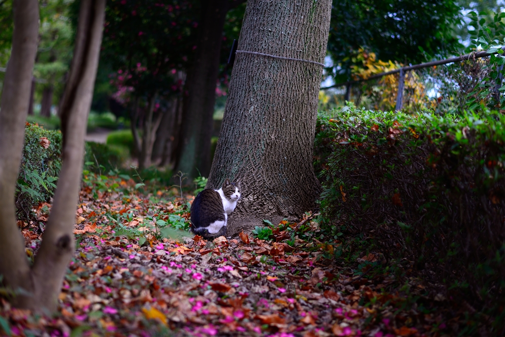 落ち葉と花びらの絨毯