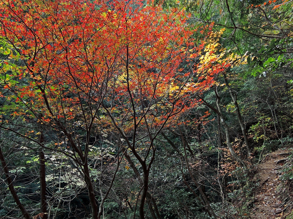 3 続いて、アカヤシオの紅葉に出会います。