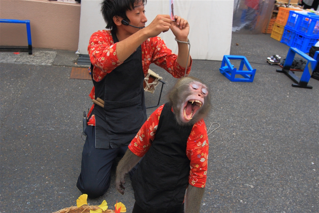 余興の猿回し@竜神大吊橋観光センター(茨城県常陸太田市)