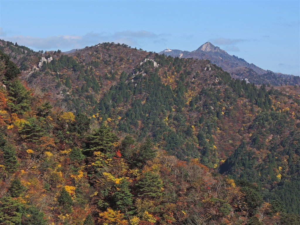 1 仙鶏尾根の北側に鎌ヶ岳とその後ろに御在所岳ロープウェイ頂上駅が望見できます。